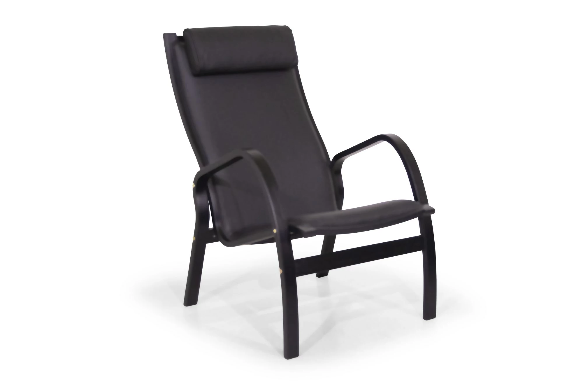 Agger Lænestol M. Nakkestøtte, Sort Læder Og Lak