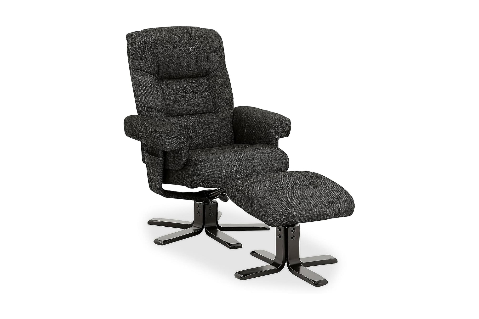 August er en stor og eksklusiv lænestol med høj siddekomfort og en taburet som giver ekstra høj siddekomfort. Lænestolen er fremstillet i et sort stof. Lænestolen er justerbar og har et enkelt og tidløst design, hvilket gør at den passer ind i de fleste h