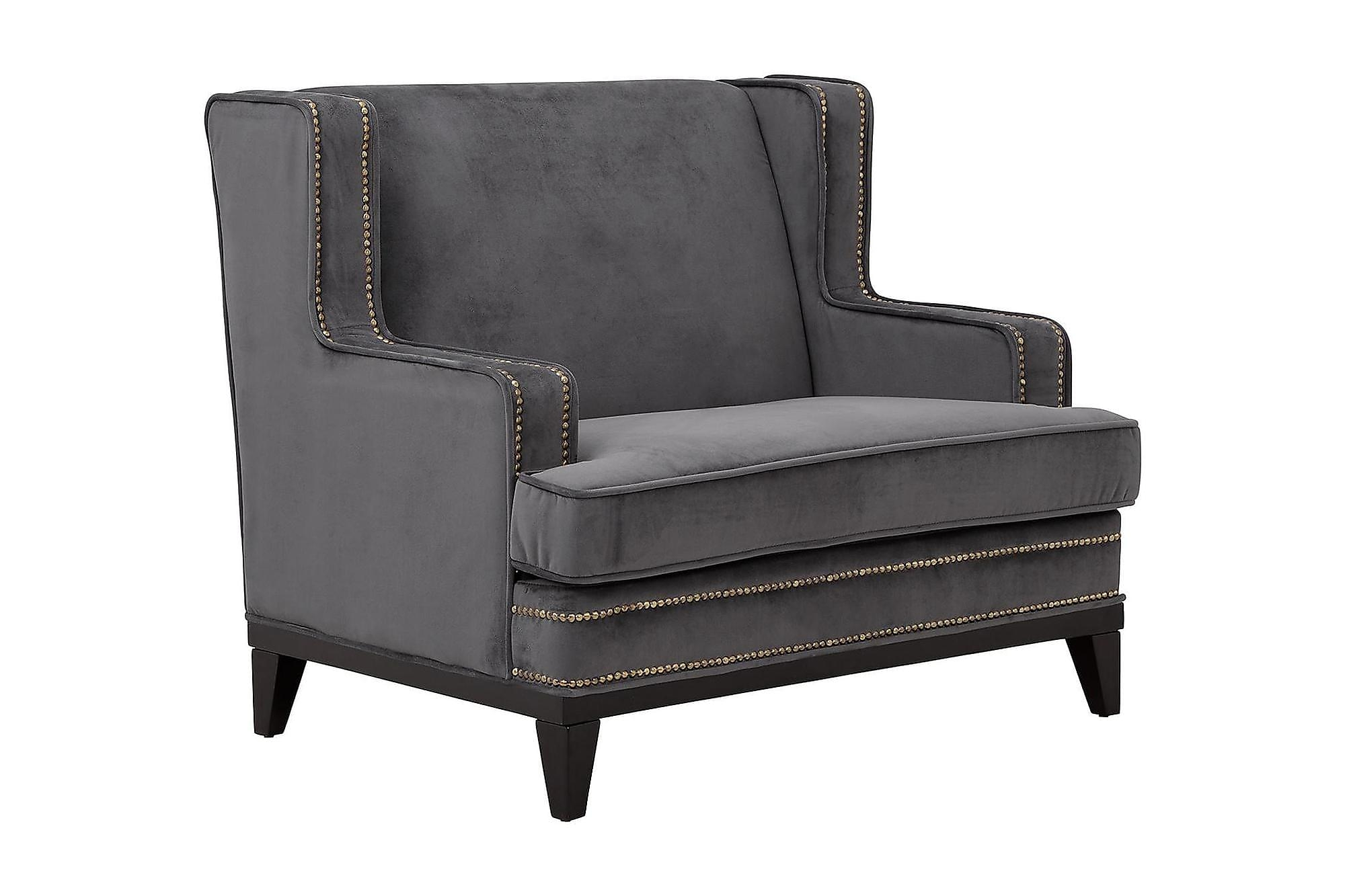 Crosby er en charmerende lænestol med skønne detaljer. Brede siddehynder sikrer rigtig god komfort og det grå fløjlsbetræk sørger for et eksklusivt udtryk. Se alle lænestole her. Vedligeholdelse Husk at møbler skal plejes og vedligeholdes for at sikre læn