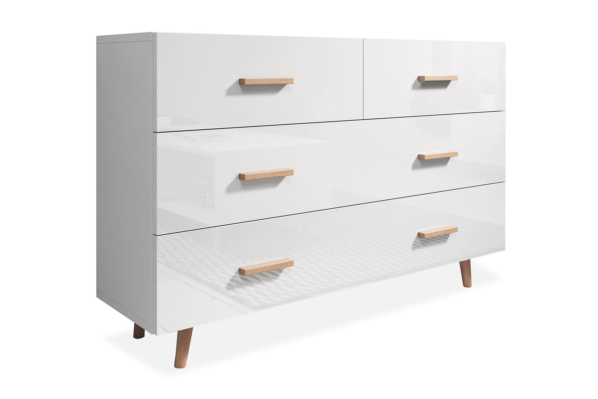 Danderyd er en smuk kommode i skandinavisk stil. Med stilrene beslag mod den højblanke læderfront, udstråler kommoden minimalisme og finesse. Kommoden har smukke træben og er fremstillet af lamineret, massiv træ. Kommoden har en højde på 80 cm, en dybde p