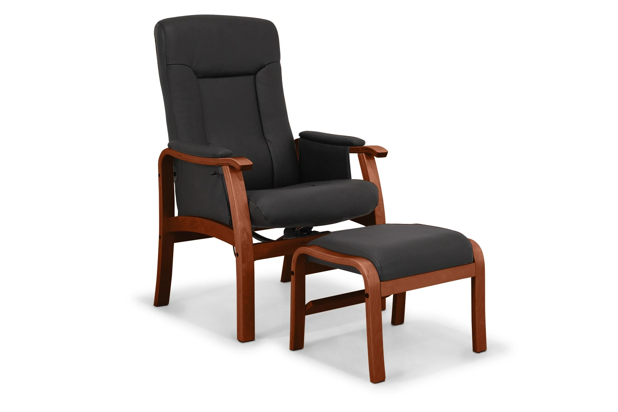 Otiumstol, lænestol eller hvilestol – kært barn har mange navne. Vores bud på en super lækker otiumstol er denne fra Dragør-serien. Lænestolen er inkl. fodskammel og med trinløs regulering af ryggen. Stolen er monteret med sort stof på alle slidflader og
