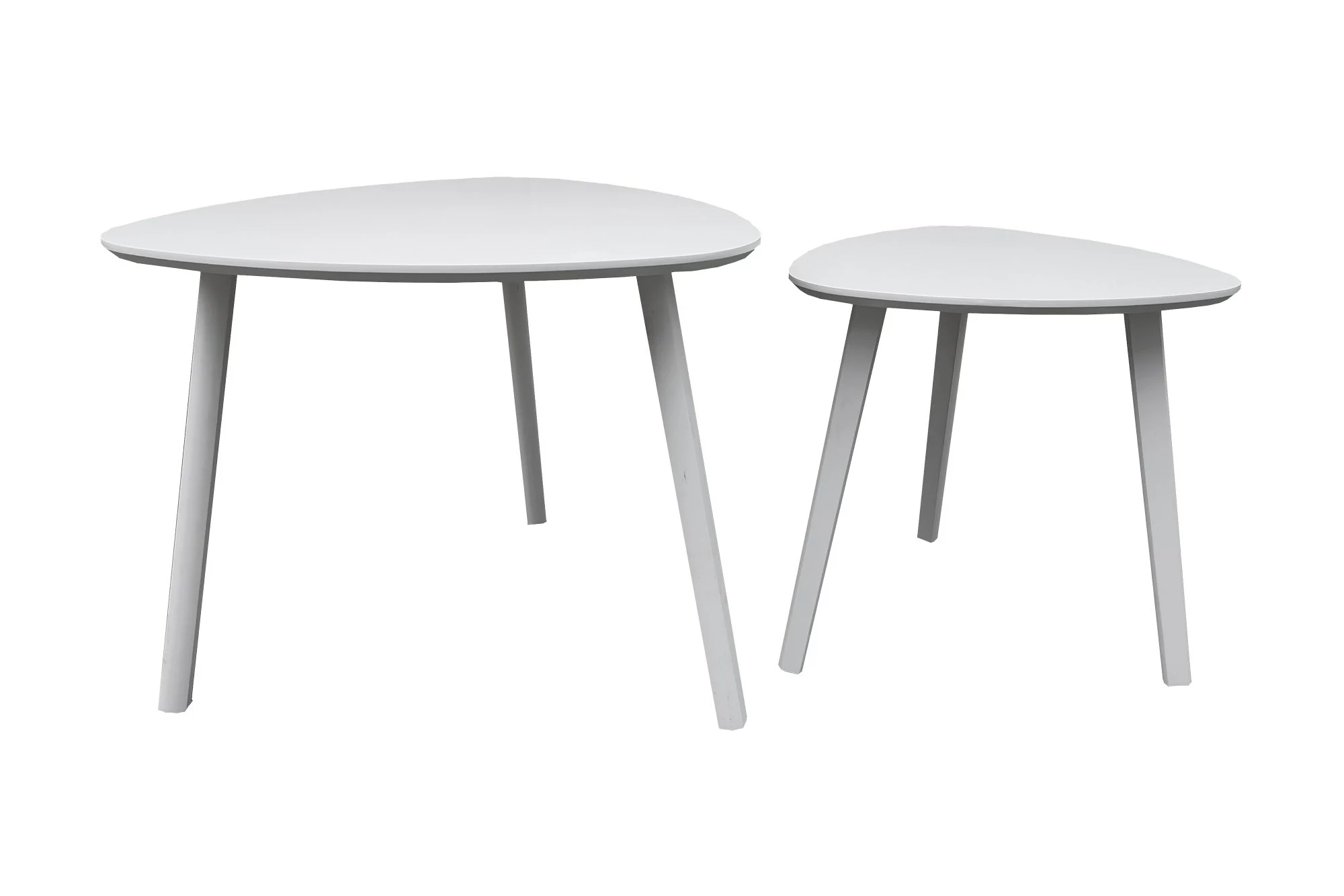 Sofabordssæt med to borde med hvide bordplader i MDF samt hvide bambusben. Det største bord måler 45 cm i højden, 55 cm i dybden og 55 cm i længden. Det lille bord måler 40 cm i højden, 40 cm i dybden og 40 cm i længden. Se alle Emilie sofabordssæt her. H