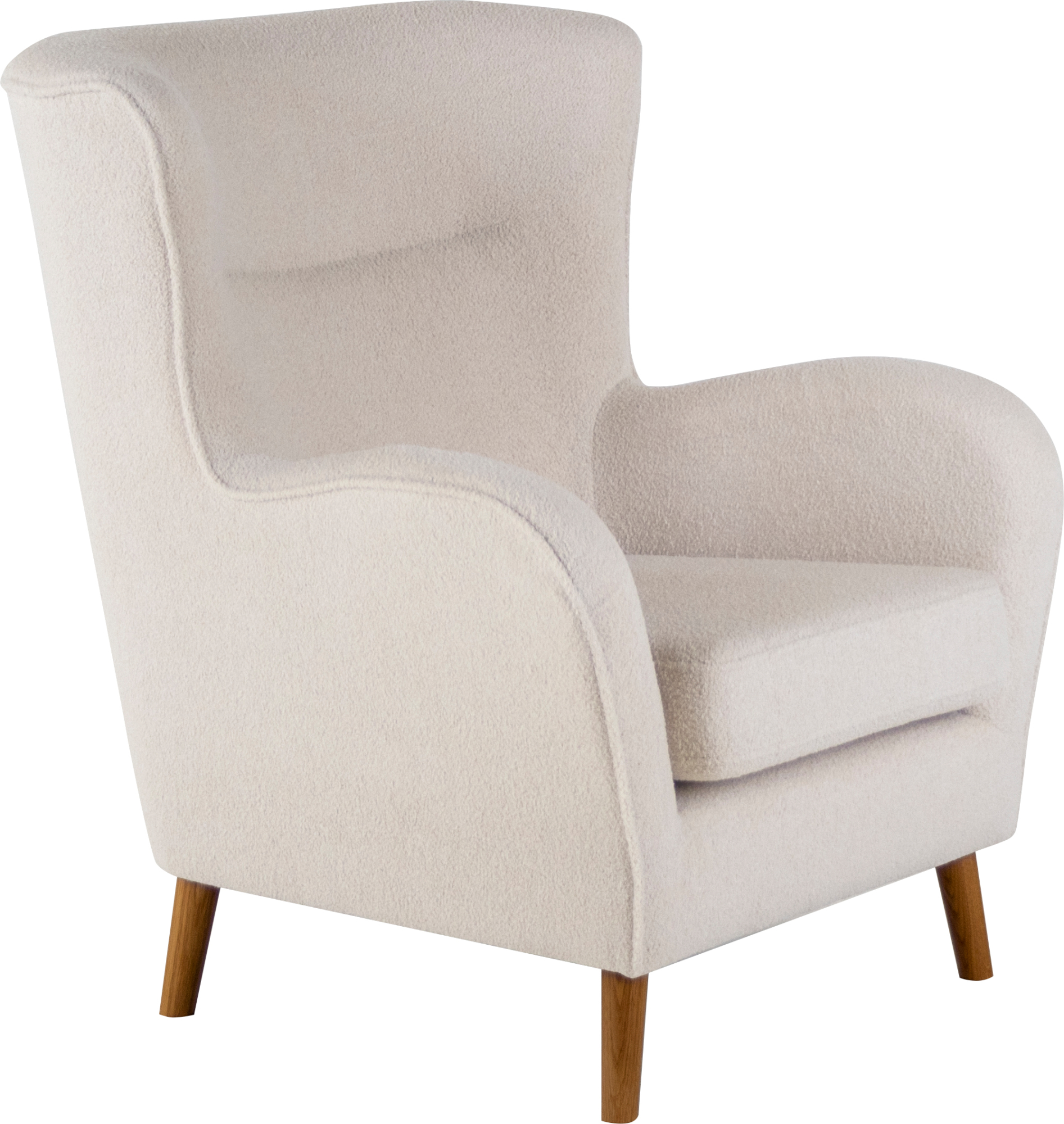 Smuk lænestol i farven off-white, hvilket gør, at lænestolen passer ind i de fleste hjem. Stolen er monteret med imiteret lammeuld. Derudover er den med massive olieret bøgetræsben. Se hele Fremont-serien her. Husk at møbler skal plejes og vedligeholdes f