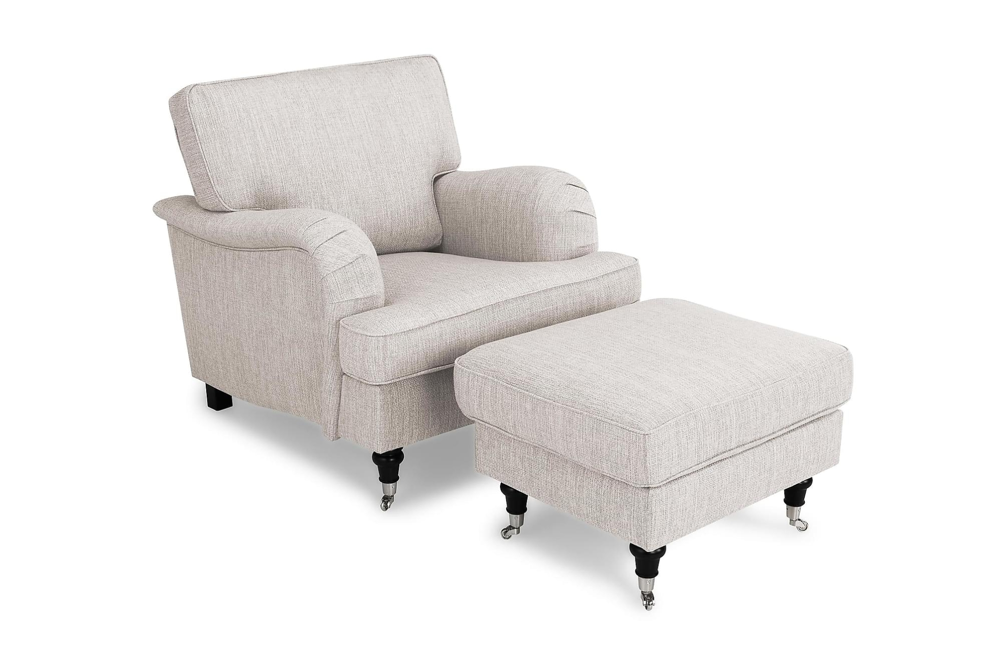 Howard Classic er en komfortabel og klassisk lænestol med smukke detaljer og en matchende puf. Lænestolen er monteret med beigefarvet stof og store, bløde puder med polyesterskum. Denne lænestol vil passe godt ind i de fleste hjem, og vi kan også anbefale