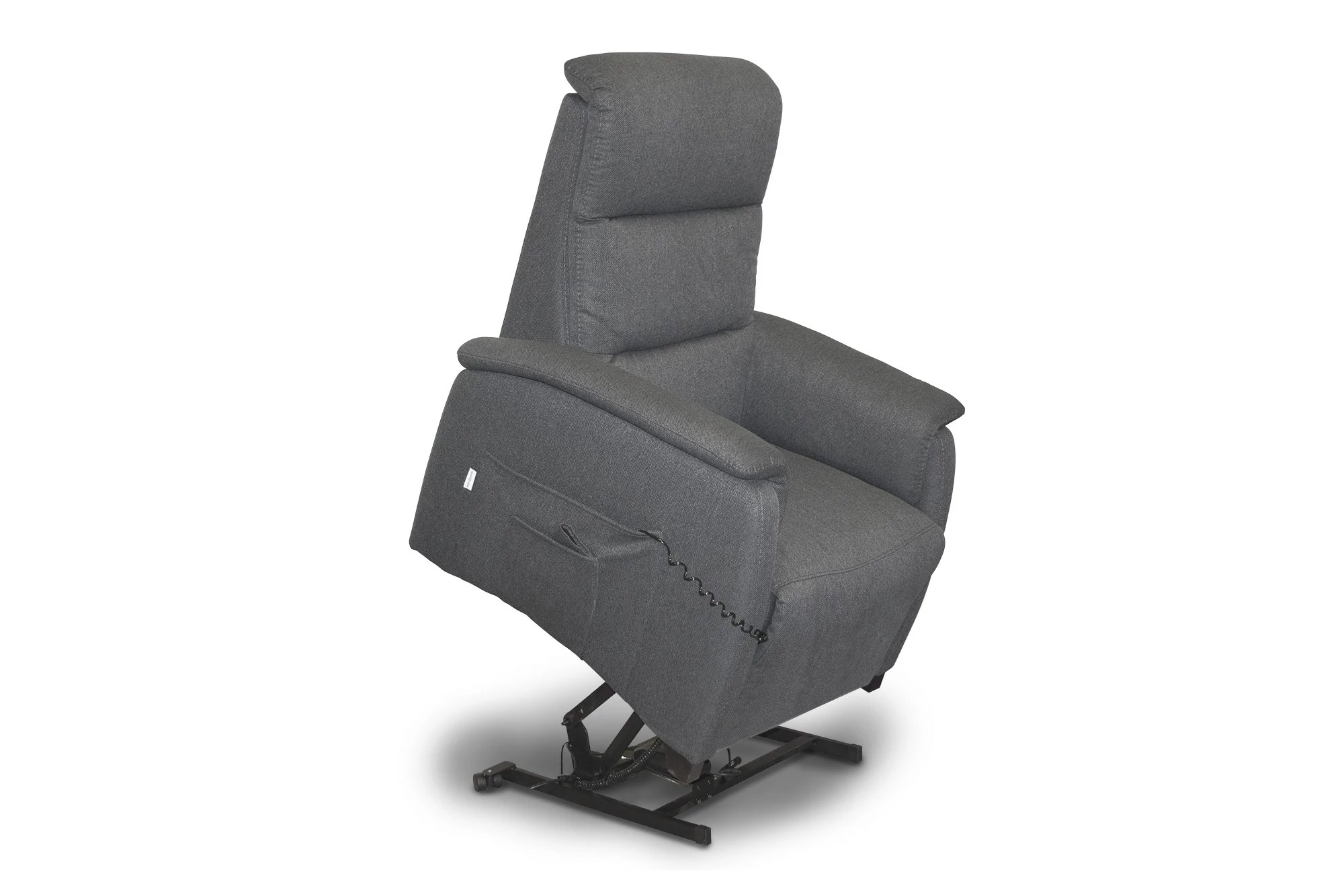 Vores Lindus antracitfarvet lænestol er med indbygget fodstøtte, regulerbar ryg og udstigningshjælp. Stolen er udstyret med elfunktion med to motorer. Der er desuden monteret en betjeningspanel i højre side. Lænestolen løfter ca. 150 kg. Se Lindus-serien