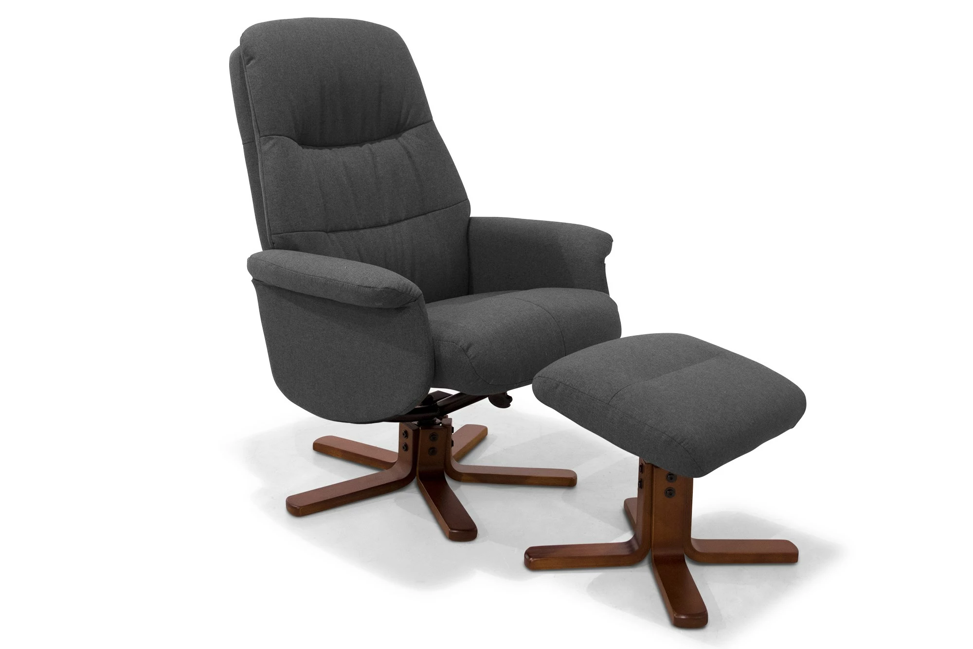 Living lænestol er en flot højrygget lænestol med fodskammel. Lænestolen er monteret med antracitgrå stof. Der er trinløs regulerbar ryg samt justerbar nakkefunktion. Derudover har stolen en massiv maghonifarvet drejesokkel. Stolen måler 107,5 i højden, 7
