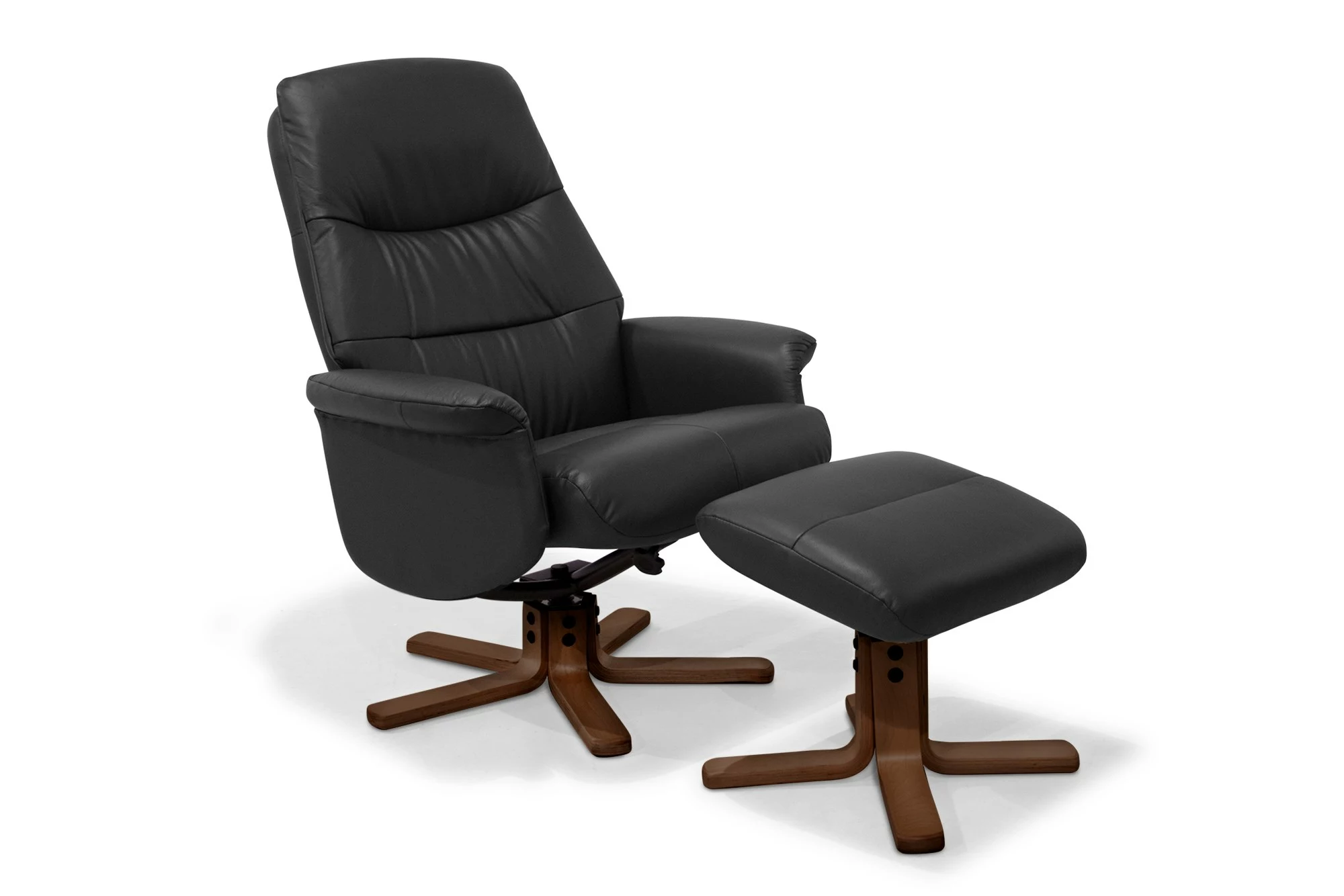 Living Lænestol M. Skammel, Sort Læder Og Maghonifarvet Stel