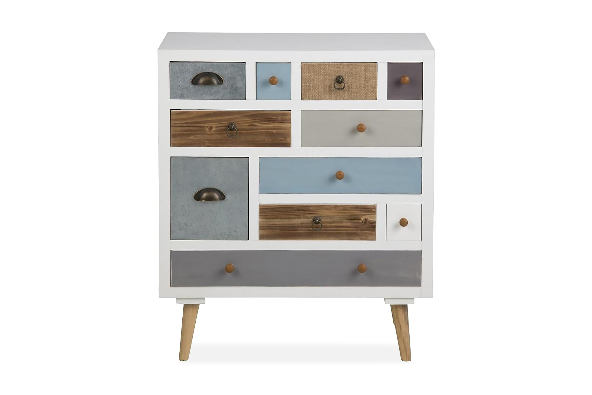 Marco er et praktisk opbevaringsmøbel med charmerende design. Kommodens 11 skuffer i varierende stil, form og design, er rummelige og har plads til alle dine ting. De moderne høje, vinklede ben giver et luftigt uddtryk, samtidig med at de gør støvsugninge