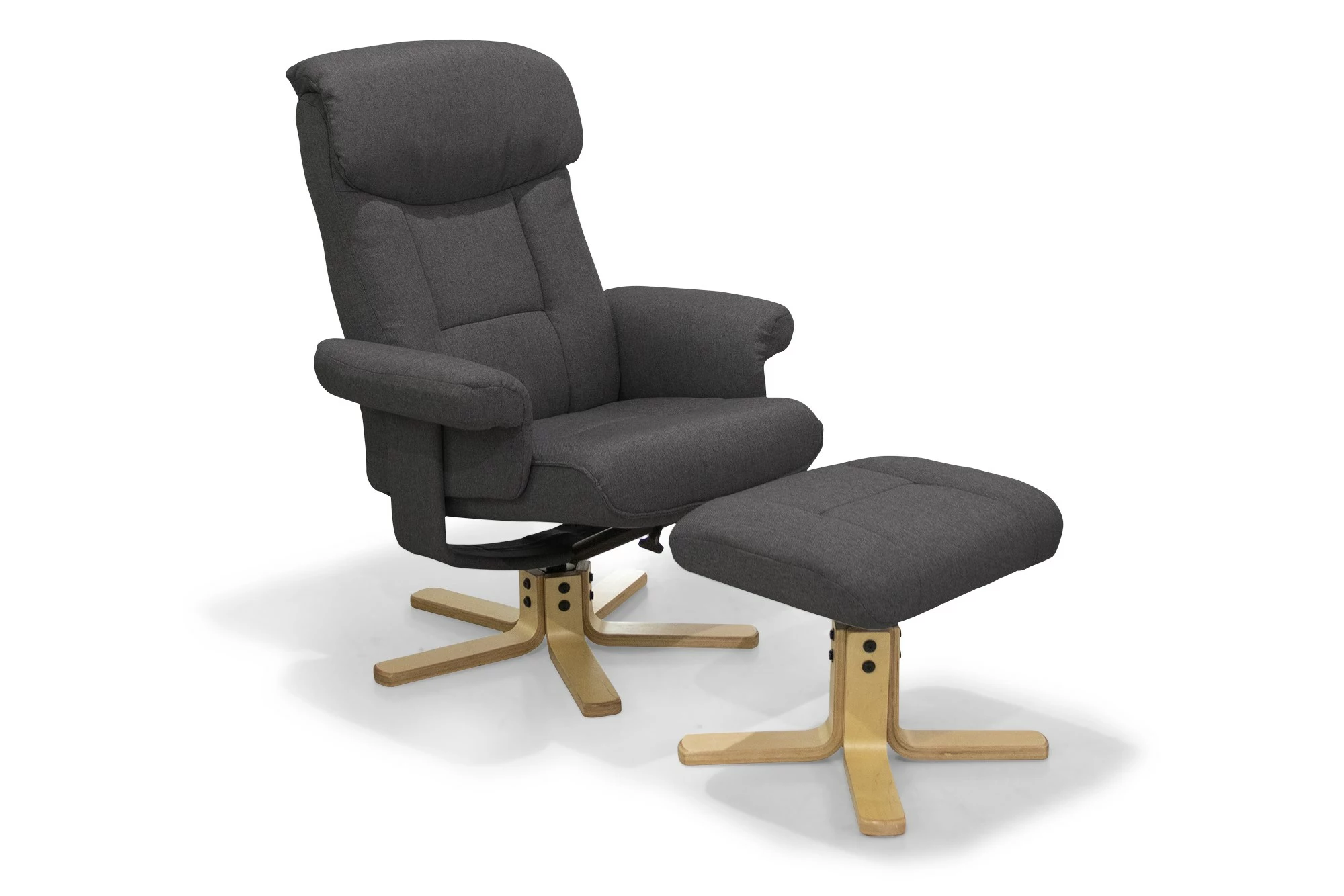Lænestol monteret med antracitfarvet stof og naturfarvet stel. Stolen er med fodskammel og trinløs regulering af ryggen. Den måler 104,80 cm i højden, 102,90 cm i dybden og 79 cm i længden. Se hele Maribo-serien her. Husk at møbler skal plejes og vedligeh