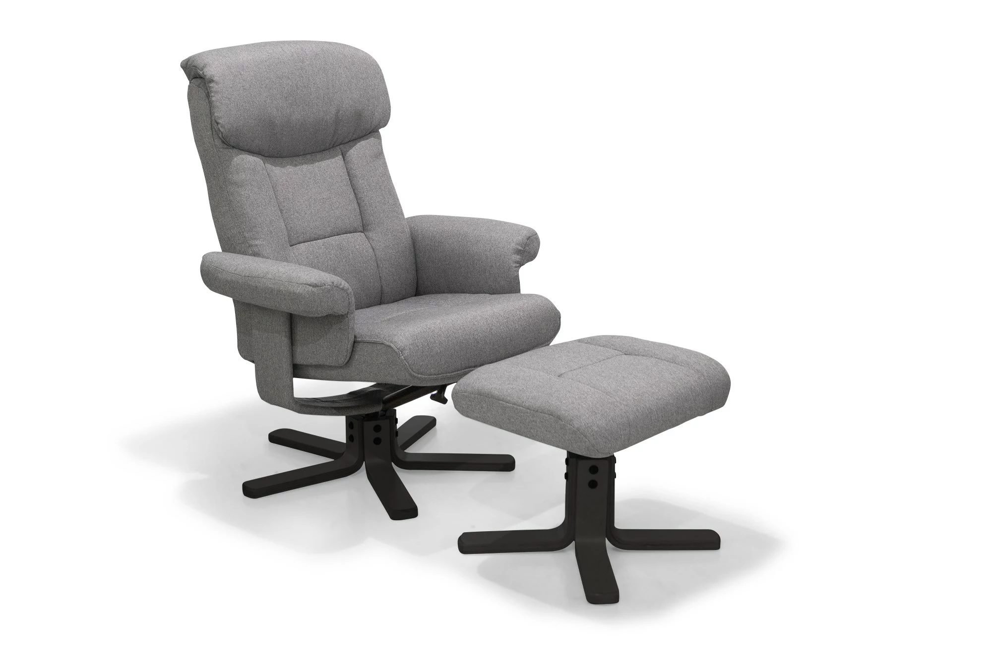 Lænestol monteret med gråt stof og sort stel. Stolen er med fodskammel og trinløs regulering af ryggen. Den måler 104,80 cm i højden, 102,90 cm i dybden og 79 cm i længden. Se hele Maribo-serien her. Husk at møbler skal plejes og vedligeholdes for at sikr