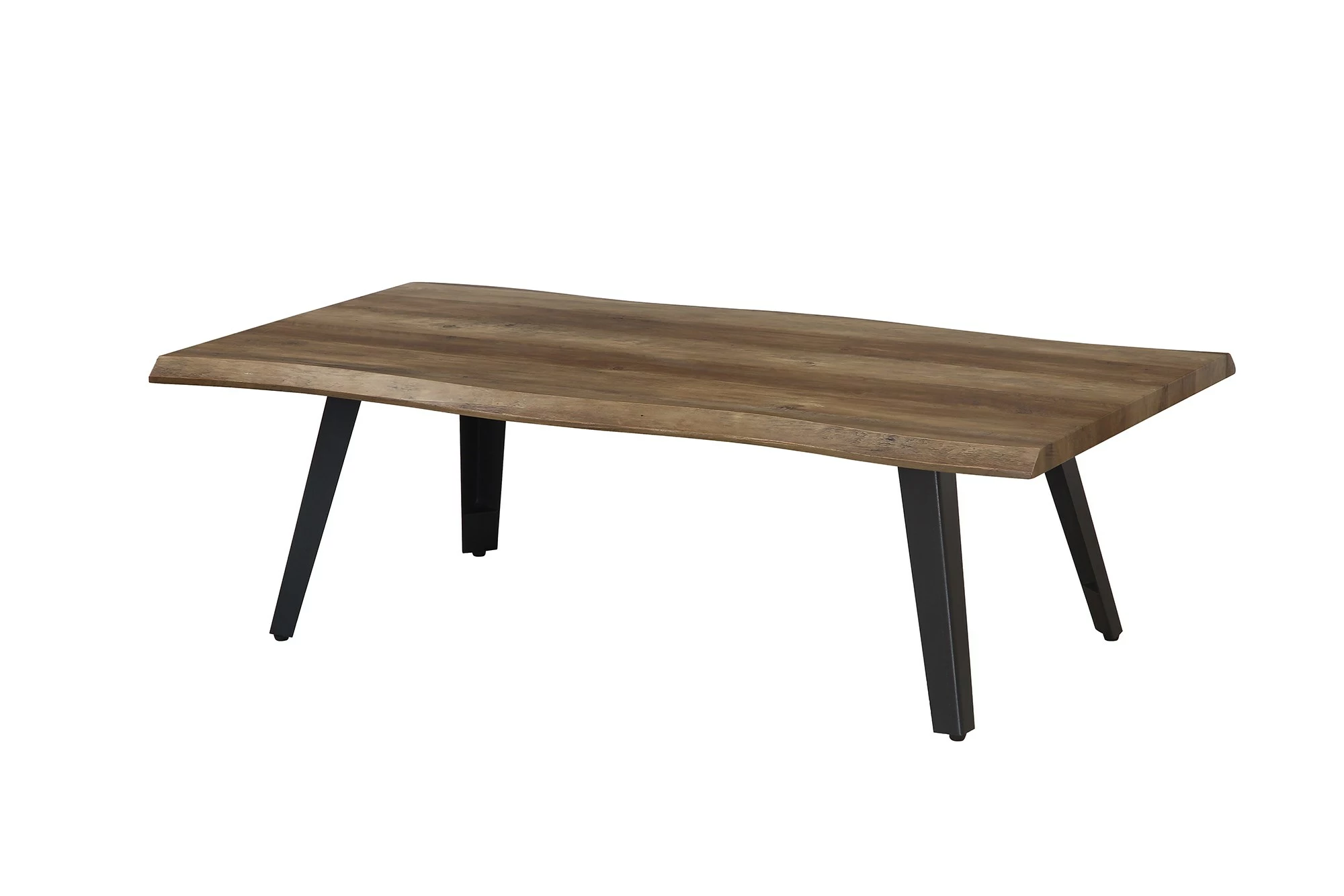 Sofabord i olieret egefolie på overfladen og med sorte metalben. Bordet måler 48 cm i højden, 70 cm i dybden og 130 cm i længden. Folie er et fleksibelt materiale, som muliggør at beklæde flotte organiske faconer. Folie er et mindre stærkt materiale end f