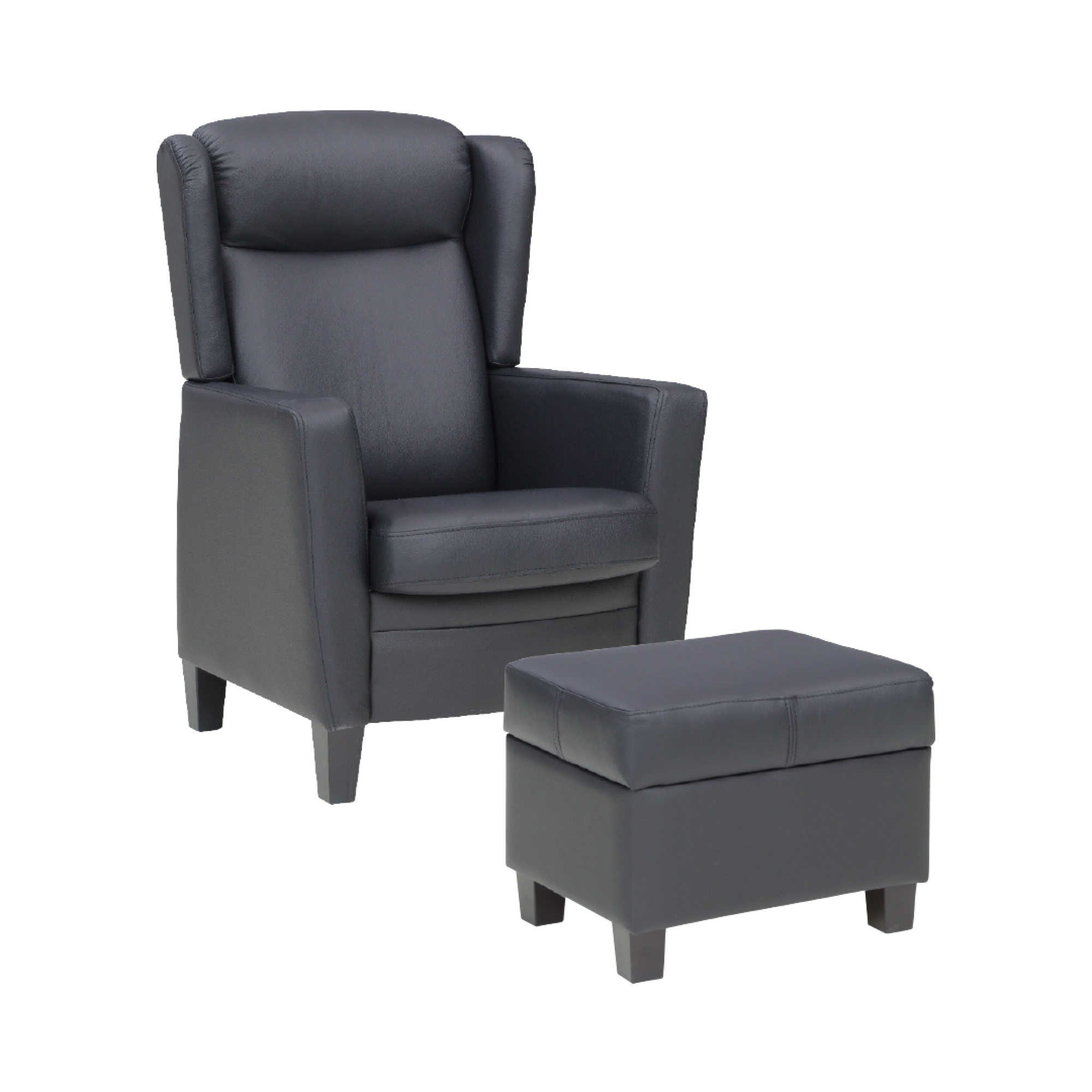 Marstal Lænestol M. Skammel, Sort Læder Og Sort Stel