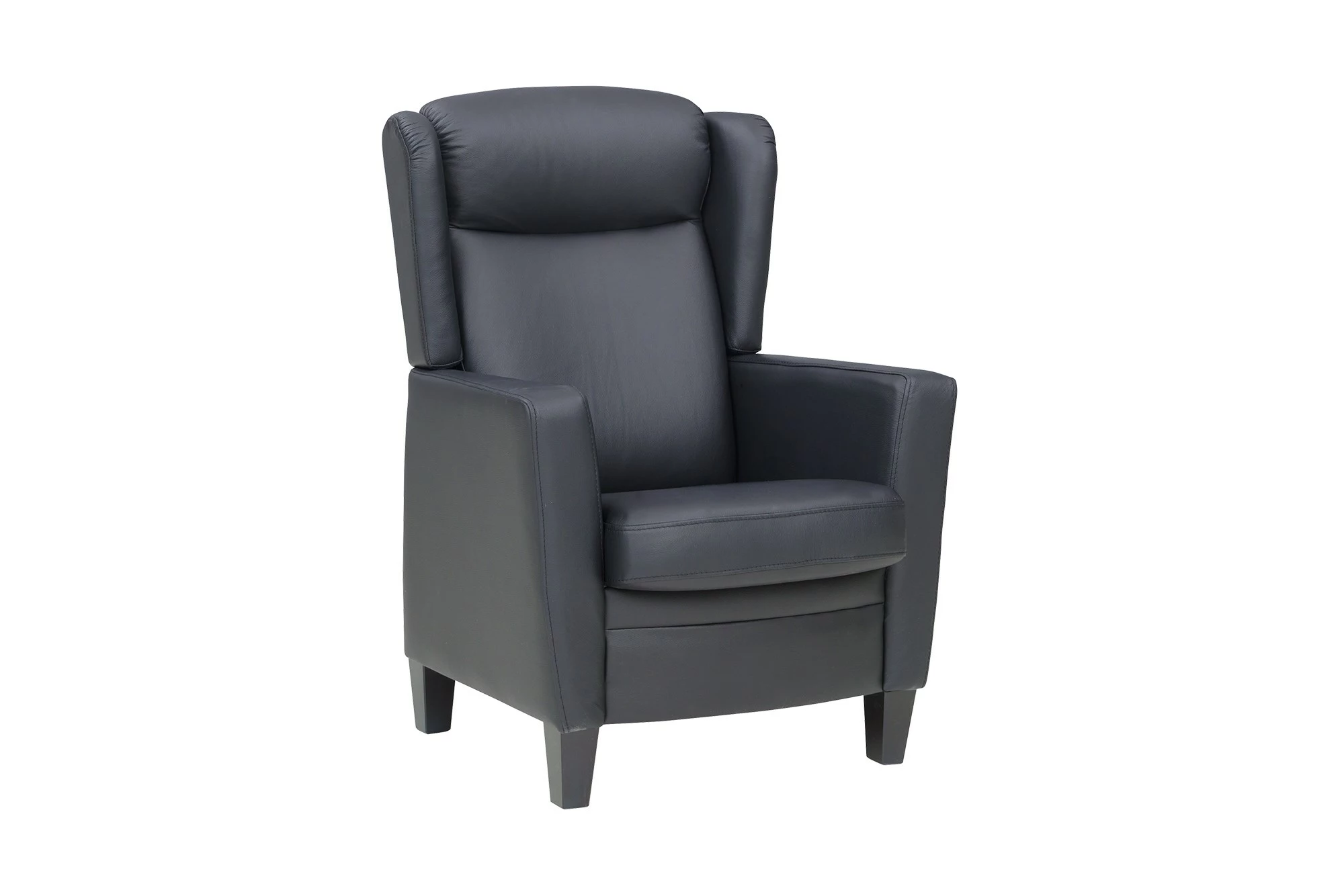 Lænestol med indstilling i ryggen. Stolen er monteret med sort læder og sorte ben. Hvis du ønsker en matchende fodskammel, kan du finde den her. Stolen måler 80 x 85 x 95 cm. Se alle vores lænestole her. Husk at møbler skal plejes og vedligeholdes for at