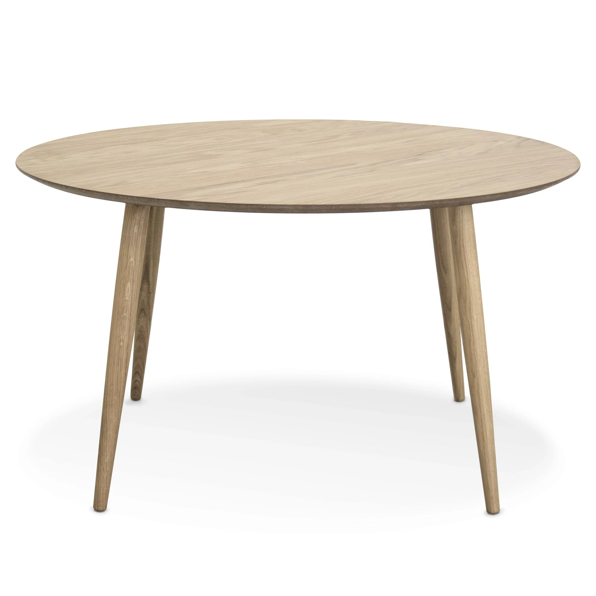 Flot rundt sofabord i hvidolieret egetræsfinér med massive egetræsben i et trendy design. Sofabordet vil passe ind i stort set alle hjem uanset stil og farvevalg. Bordet måler 50 cm i højden, 90 cm i dybden og 90 cm i længden. Mikado-serien fås i flere mo