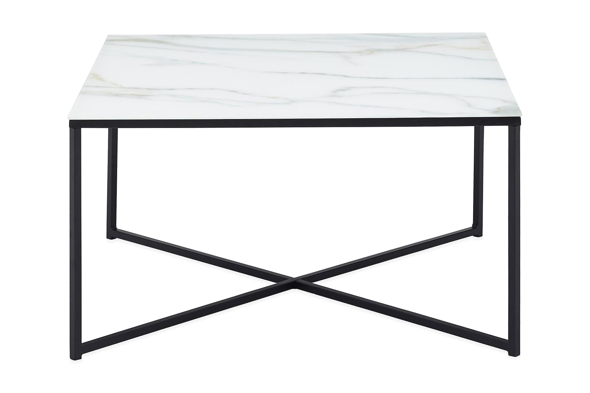 Nelly sofabord i elegant minimalistisk stil. Bordet har en bordplade i marmormønstret glas og et klassisk metalstel, en tidsløs og smuk kombination. Sofabordet har et let design som gør, at bordet passer både til store og små rum. Se alle vores sofaborde