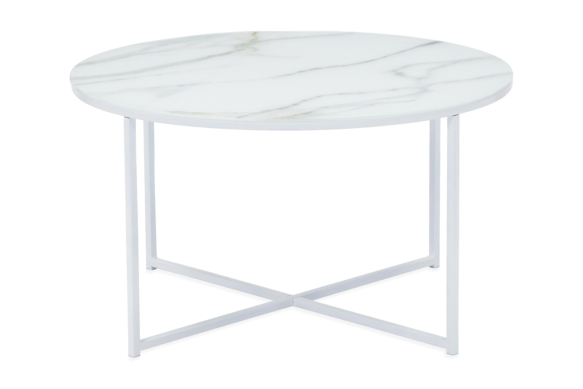 Nelly sofabord i elegant minimalistisk stil. Bordet har en bordplade i marmormønstret glas og et klassisk metalstel, en tidsløs og smuk kombination. Sofabordet har et let design som gør, at bordet passer både til store og små rum. Se alle vores sofaborde