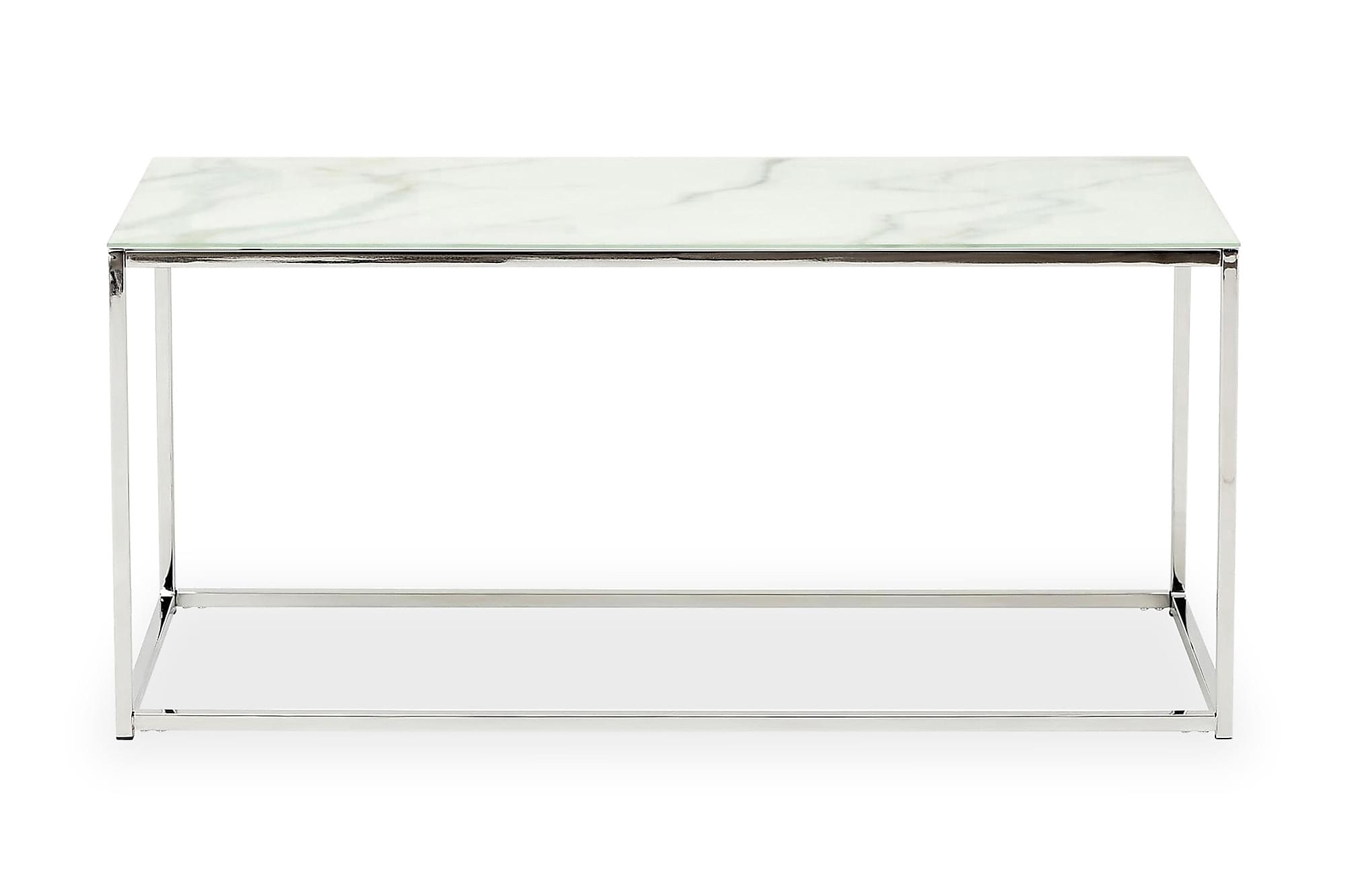 Nelly sofabord i elegant minimalistisk stil. Bordet har en bordplade i marmormønstret glas og et klassisk metalstel, en tidsløs og smuk kombination. Sofabordet har et let design som gør, at bordet passer både til store og små rum. Se alle vores sofaborde