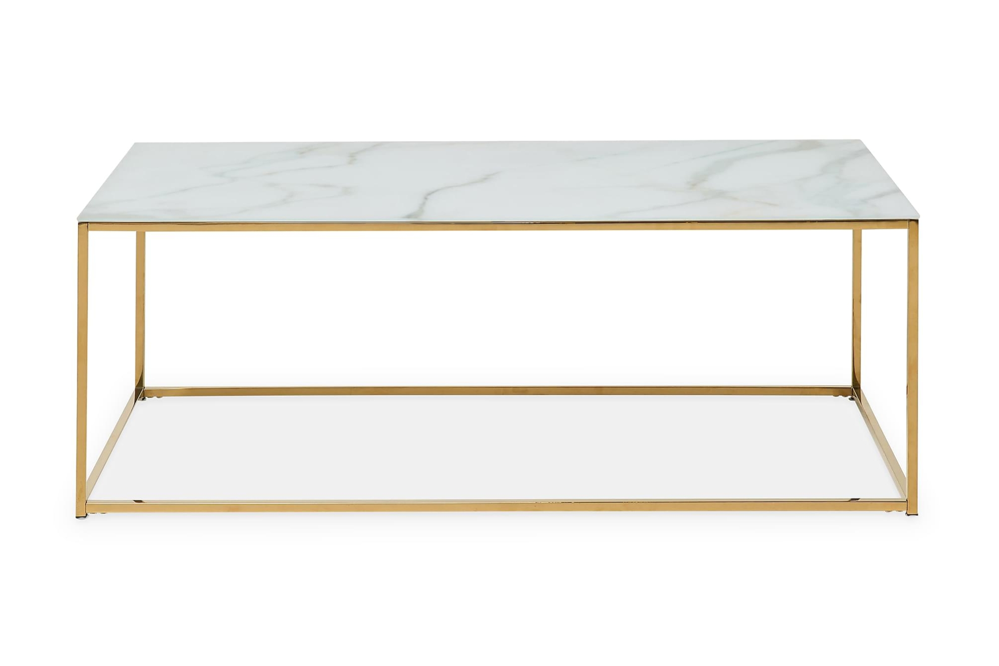 Nelly sofabord i elegant minimalistisk stil. Bordet har en bordplade i marmormønstret glas og stel af messing, en tidsløs og smuk kombination. Sofabordet har et let design som gør, at bordet passer både til store og små rum. Sofabordet har en højde på 45