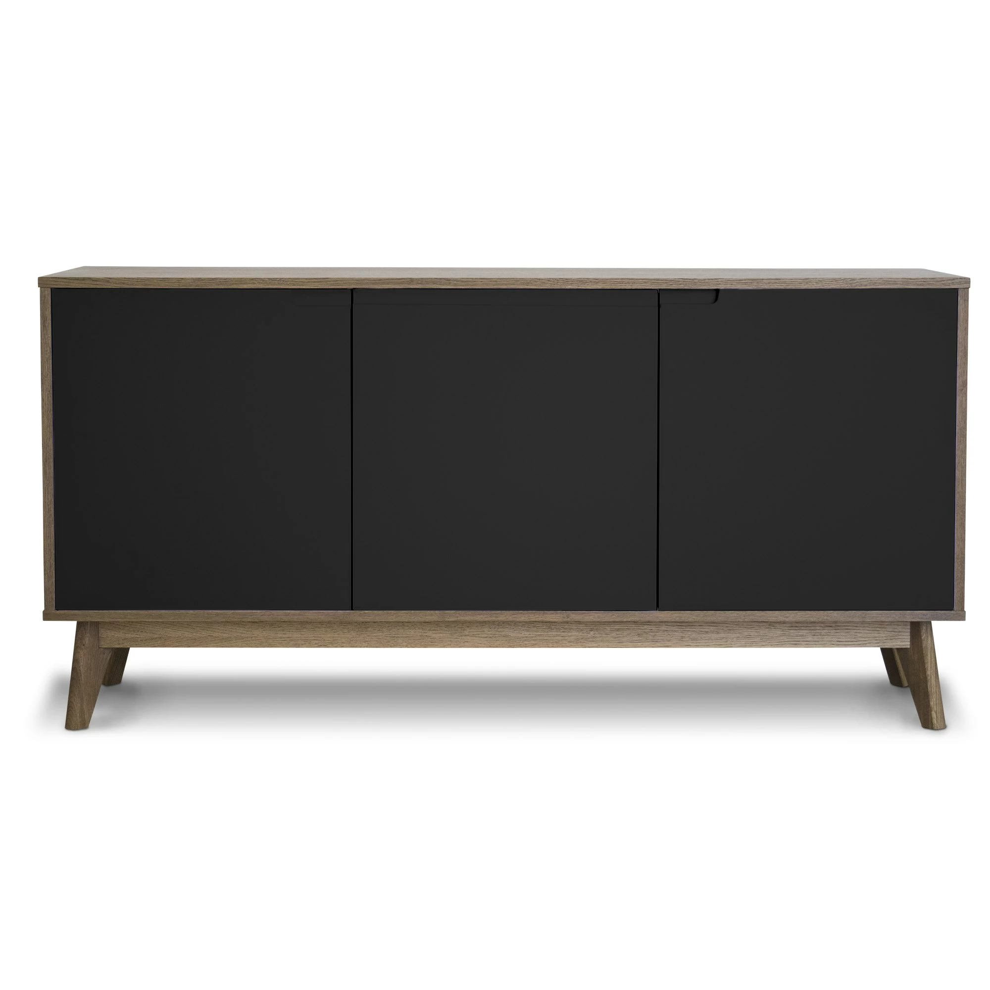 FSC®-certificeret produkt Mærket med det lille træ er din garanti for, at det anvendte træ stammer fra skove, der drives bæredygtigt. Du kan derfor nyde møblet med god samvittighed. Flot og klassisk 3-dørs skænk med sortlakeret låger. Selve skænken er i
