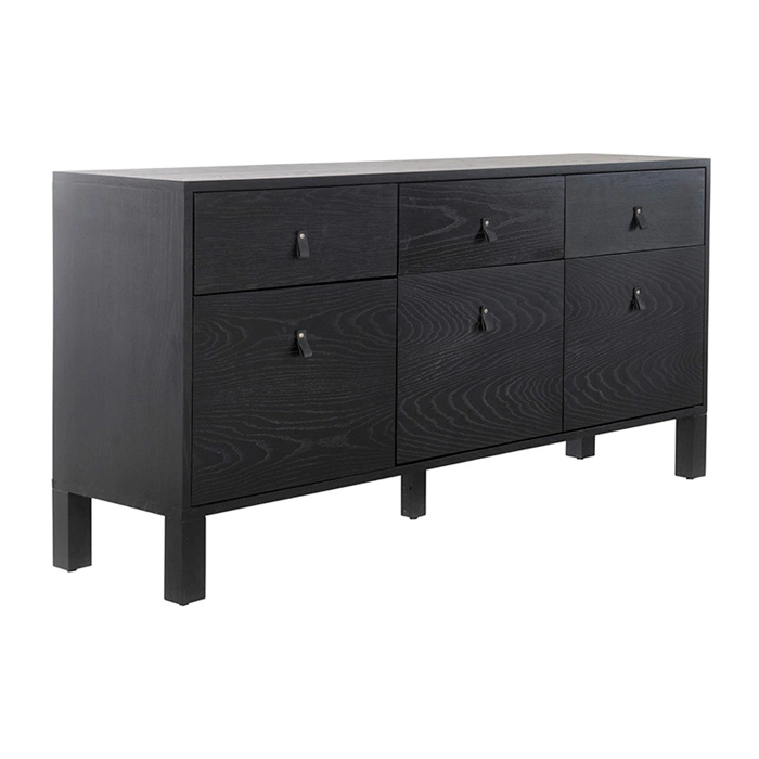 De små detaljer såsom lædergrebene, giver skænken et moderne og stilrent udtryk, og den passer