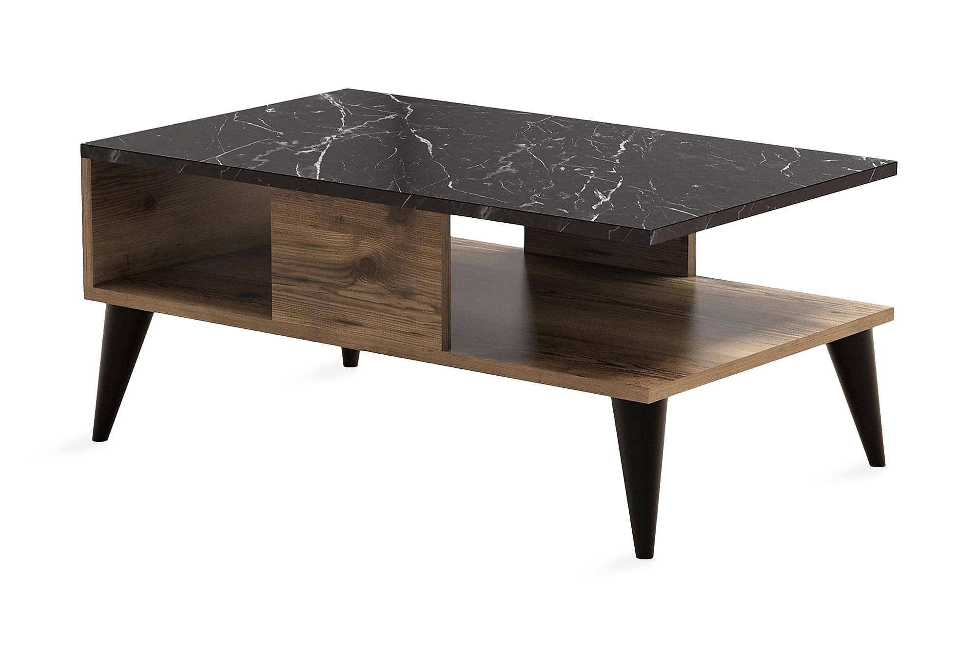 Sharod sofabordet er til dig, der leder efter et tidsløst møbel, som kan præge din stue positivt. Sofabordet har to hylder, som fungerer perfekt til at opbevare bl.a. aviser, magasiner, pynt eller andet. Det sorte marmorlook giver sofabordet et eksklusivt