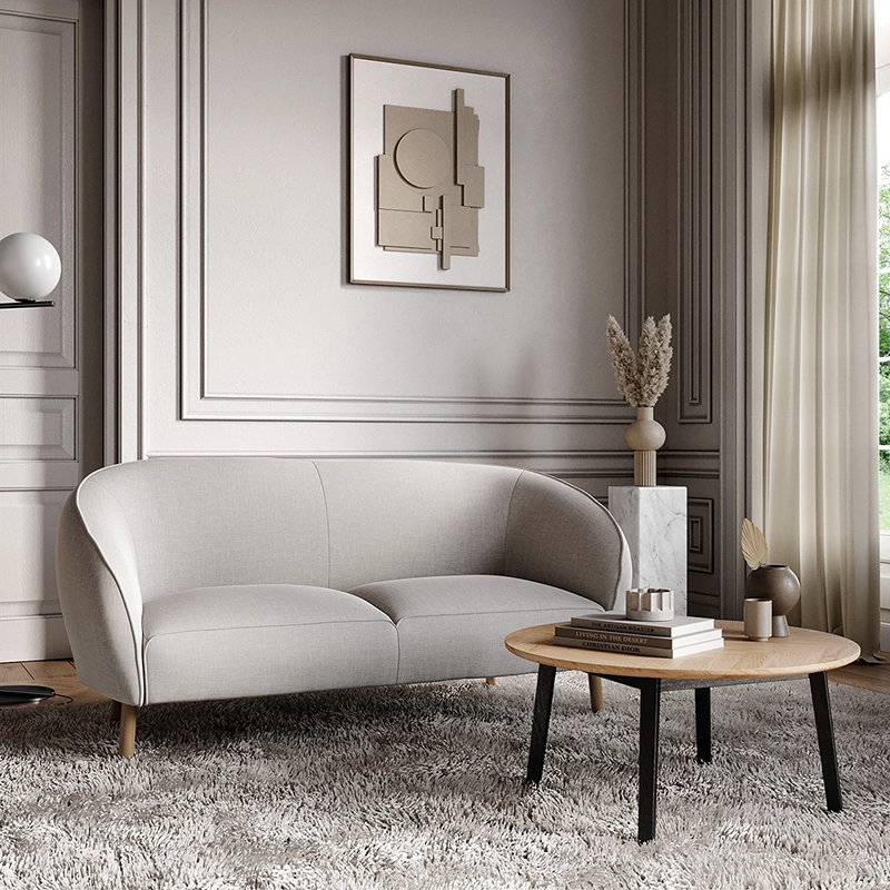 Sinclair sofaen kommer med fine runde former samt et naturligt look.De fine træben er i lakeret gummitræ og fuldender sofaen!