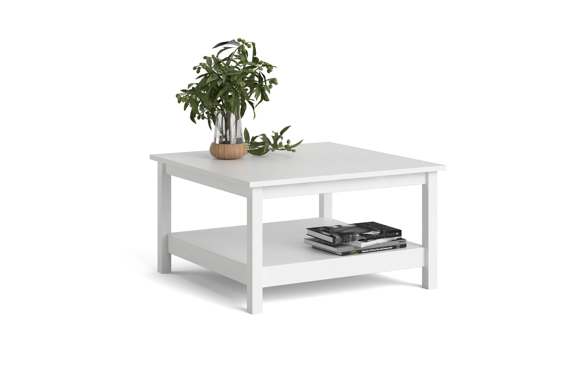 Lækkert og enkelt sofabord i hvid folie med hylde. Sofabordet har en højde på 45 cm, en dybde på 81 cm og en længde på 81 cm. Benene måler 10 cm. Se hele vores Sofia-serie her. Vedligeholdelse Husk at møbler skal plejes og vedligeholdes for at sikre længs
