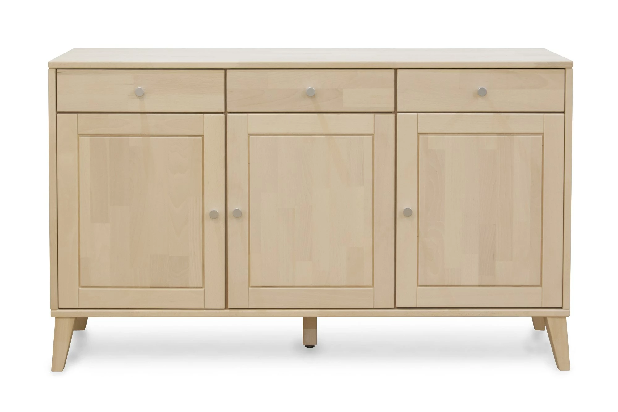 På grund af varens høje vægt anbefaler vi, at du vælger hjemmelevering. Her ser du vores flotte og klassiske tre-sektioners skænk med tre låger og tre skuffer i delmassiv hvidolieret bøgetræ. Skænken måler 85 cm i højden, 40 cm i dybden og 140,5 cm i læng